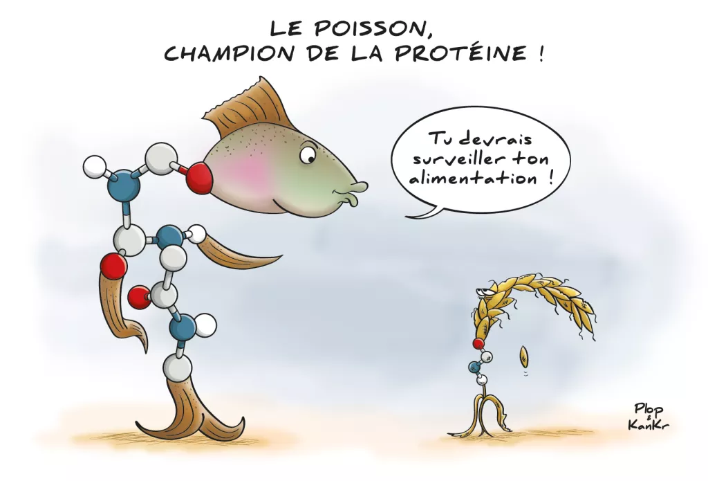 Parmi les nombreuses possibilités envisagées (protéines d’insectes, de levure, de microalgues…), les protéines végétales apparaissent comme une des solutions les mieux adaptées pour répondre aux enjeux actuels de la filière aquacole. Cependant, la croissance et la santé des poissons nourris avec un aliment intégralement fabriqué avec des protéines végétales sont affectées. Différentes raisons peuvent expliquer ces effets négatifs, mais leur faible qualité nutritionnelle constitue un élément important du problème. Pour comprendre pourquoi elles sont dites de moins bonne qualité que les protéines animales, il est important de commencer par expliquer ce qu’elles sont et ce qui les constitue.