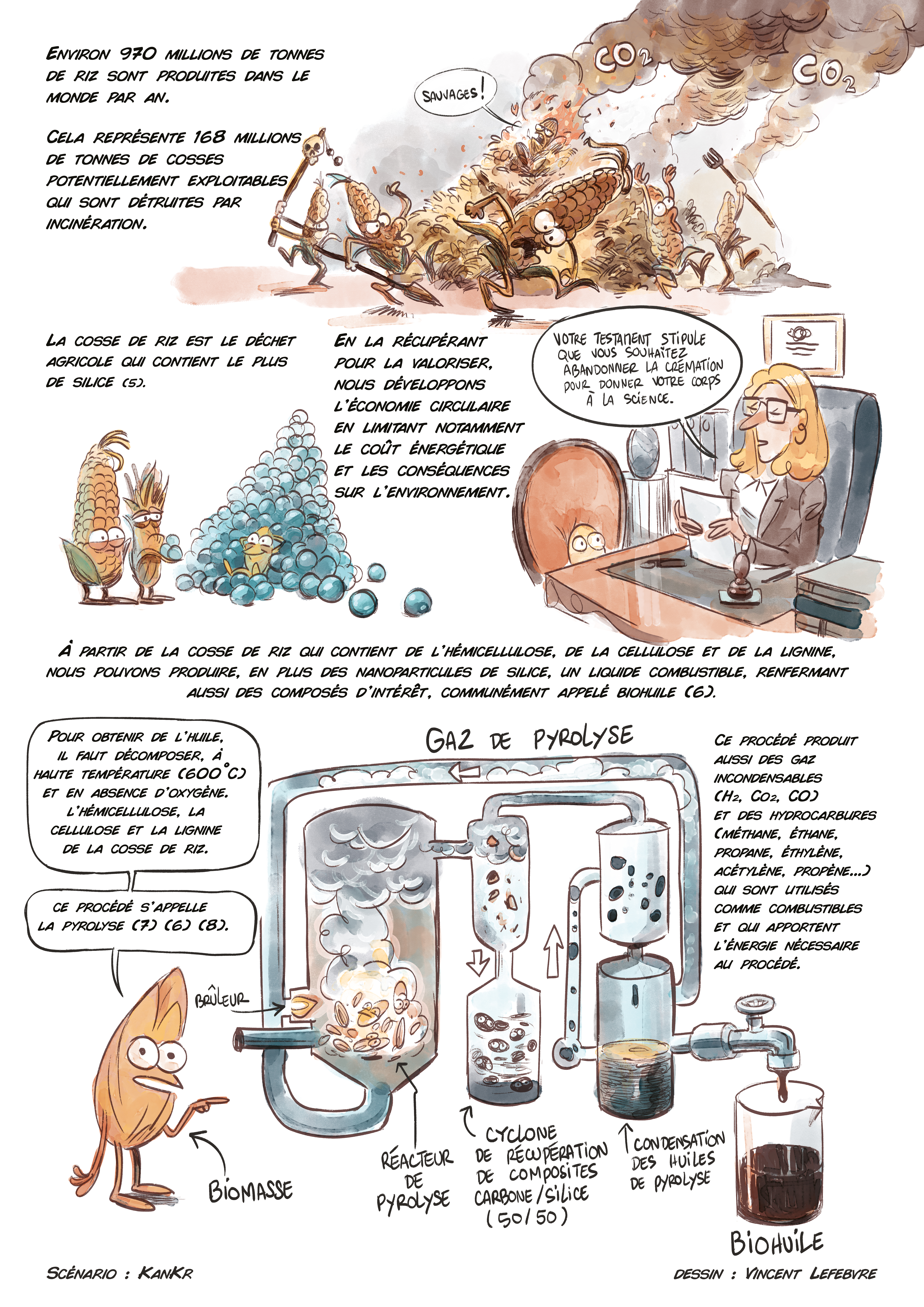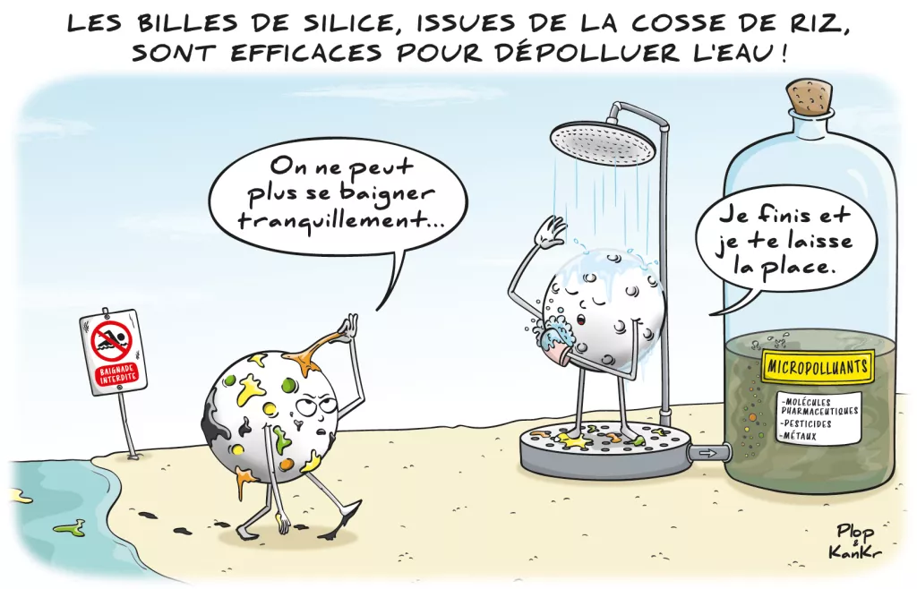 En résumé, l’affinité de la silice pour les composés hydrophiles chargés positivement offre une méthode polyvalente et efficace pour purifier l’eau. De plus, la récupération des métaux précieux à partir des effluents industriels pourrait améliorer considérablement les méthodes actuelles de traitement de l’eau et contribuer aux efforts de conservation de l’environnement et de récupération des ressources. Aujourd’hui, c’est le cœur du projet de recherche Circuballe qui, par la valorisation des déchets du riz simultanément dans l’utilisation de la bio-huile comme bio-carburant et dans le traitement des eaux par la silice, entend développer la pyrolyse de la balle de riz comme un nouveau mode d’économie circulaire.